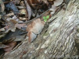 Crustáceos com toca em vários locais das plantações, chegando a 100m de distância do mangue e a 30m de altitude em relação ao espelho de água. Estrago esporádico nos pés de pimenta, mas preferência por outras plantas, nomeadamente rebentos de rebentos de Heliconia sp.